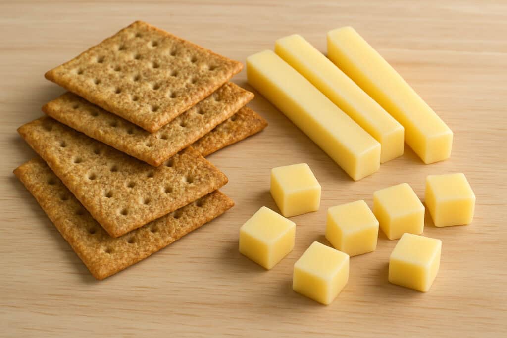 Pairing mild cheese with whole grain crackers offers protein, calcium, and lasting energy. Cheese sticks or cubes are easy for toddlers to grasp. Choose crackers with minimal added sugar and whole grains for extra nutrients. This combination is a classic for a reason—it’s satisfying and simple to prepare.